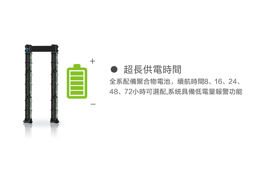 HC-TY800便攜式金屬探測門(折疊式)采用電子頻率芯片,內置高亮的區位led燈顯示,由abs、聚碳酸酯合金材料等抗沖擊力強材料制作而成,液晶顯示調節、靈敏度可調300個級別,內置雙電池左右各一個、電池可續航30小時以上,可選配續航80小時,由6塊傳感區域可以左右上下任意互換裝配,不分左右、不分上下、任意組裝、自動調節、。